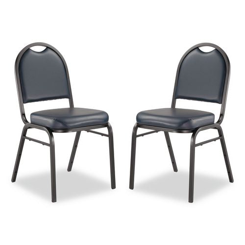 9200 Series Premium Upholstered Stack Chair, Vinyl, Supports 500 lb, 19" Seat Ht, Midnight Blue Seat/Back, Black Base,2/Pack