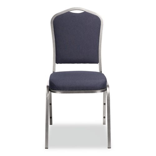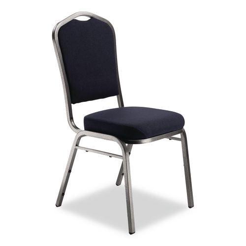 9300 Series Deluxe Upholstered Stack Chair, Fabric, Supports 500 lb, 19" Seat Ht, Midnight Blue Seat/Back, Silver Base, 2/PK