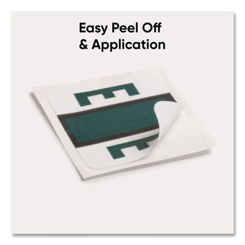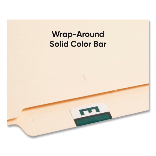 Keep files organized at a glance with these alphabetic labels that feature a wraparound solid color bar and a colored character printed on a white background. Colors are compatible with end tab systems using the bar-style format. Convenient dispensing box for easy peel off and application. Includes 500 labels per roll. Compatible with Tab® Products 1283 series alphabetical labels.
