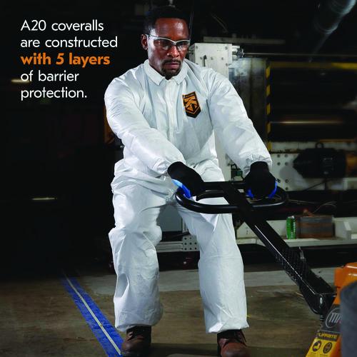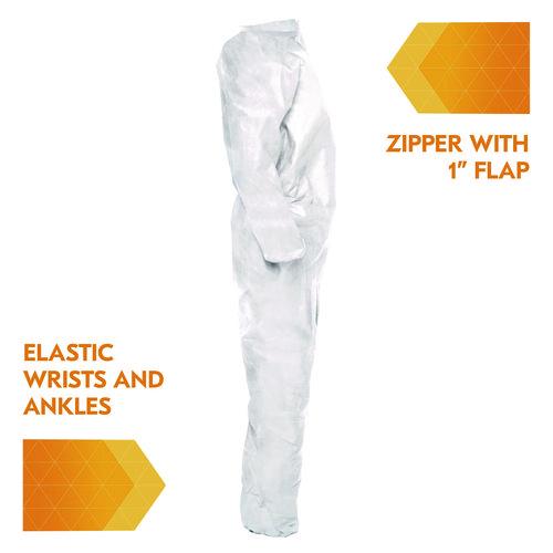 A20 Breathable Particle Protection Coveralls, Zip Front, Elastic Back, Wrists, Ankles, 4X-Large, White, 20/Carton