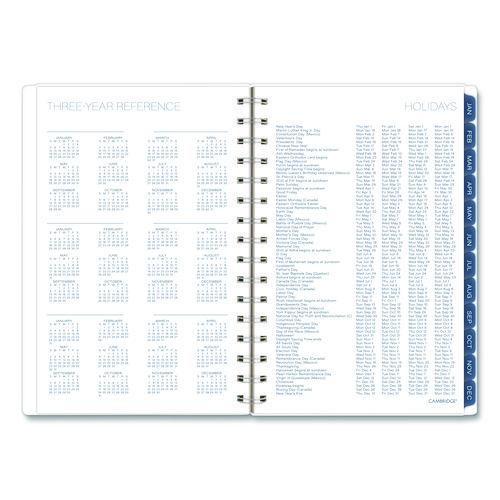 Plan with style this year when you use the Cambridge Abyss Weekly Monthly Planner. Bring tranquility to your plans with the blue water-inspired design. Start fresh each week. Weekly spreads have open daily sections paired with a QuickNotes® area and To-Do list to easily keep track of important details. See how much you can accomplish in one month! The tabbed monthly pages help you see your big picture plans in an instant. Who doesn't love extras? Special pages include a double-sided poly pocket, three-year reference calendar and others. The durable poly cover helps the planner stand up to wear and tear no matter where your day takes you. Our twin wire binding helps keep your pages secure and won't snag on your bag or clothing.Note: This is a non-returnable item.