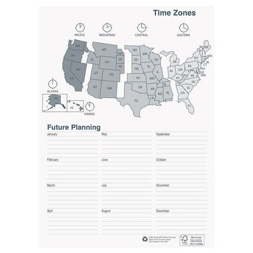 Monthly page spread enables you to see your entire month's schedule. Each page features a note section and a two-month reference calendar view for long-term planning. Includes a double-sided storage pocket. Strong wirebound core with an embossed black simulated-leather cover withstands constant use throughout the year. Made entirely of recycled materials.Note: This is a non-returnable item.