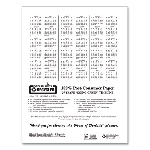 Vertical format with one weekday per column, quarter-hourly appointments and six days per week. Weeks start on Monday with a one-week per two-page layout. Three-year reference calendar page aids in long-range planning. Includes a double-sided storage pocket. Additional page lists important holiday dates over a span of three years. Features printed monthly indicators to help you quickly find the date you need. Made entirely of recycled materials.Note: This is a non-returnable item.