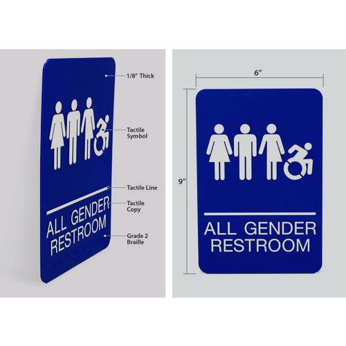 Universally and easily recognizable white graphics. Raised tactile graphics with Grade 2 Braille. Meets Americans with Disabilities Act (ADA) requirements. Includes double-side adhesive tape for mounting to door or wall.Package Includes: Mounting Tape