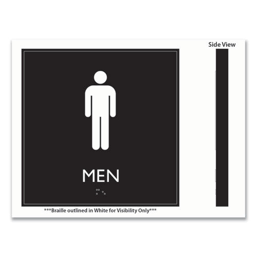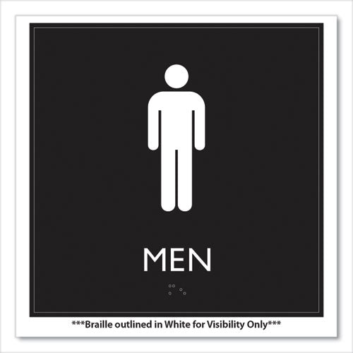Universally and easily recognizable white graphics. Raised tactile graphics with Grade 2 Braille. Meets Americans with Disabilities Act (ADA) requirements. Includes double-side adhesive tape for mounting to door or wall.Package Includes: Mounting Tape