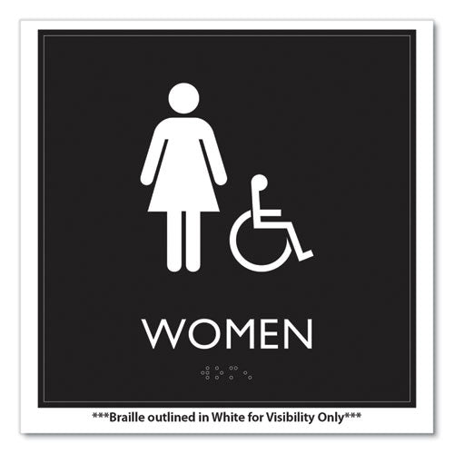 Universally and easily recognizable white graphics. Raised tactile graphics with Grade 2 Braille. Meets Americans with Disabilities Act (ADA) requirements. Includes double-side adhesive tape for mounting to door or wall.Package Includes: Mounting Tape
