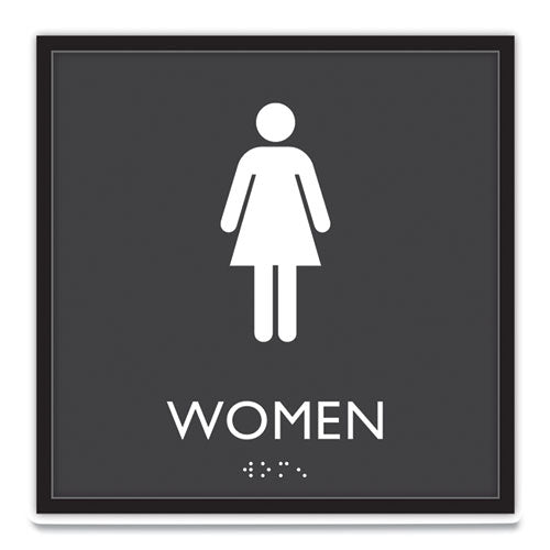 Universally and easily recognizable white graphics. Raised tactile graphics with Grade 2 Braille. Meets Americans with Disabilities Act (ADA) requirements. Includes double-side adhesive tape for mounting to door or wall.Package Includes: Mounting Tape