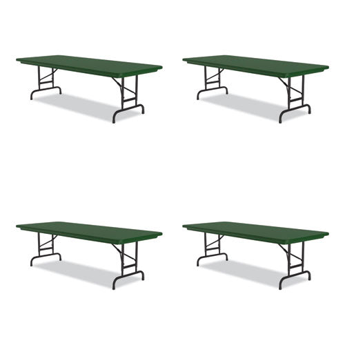 Adjustable Folding Tables, Rectangular, 72" x 30" x 22" to 32", Green Top, Black Base, 4/Pallet