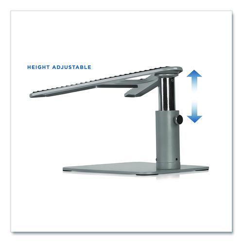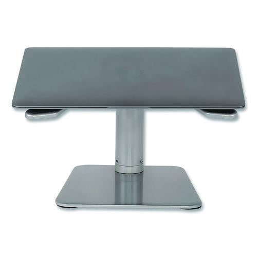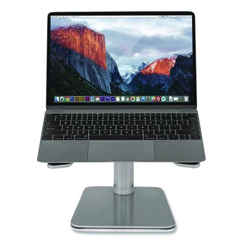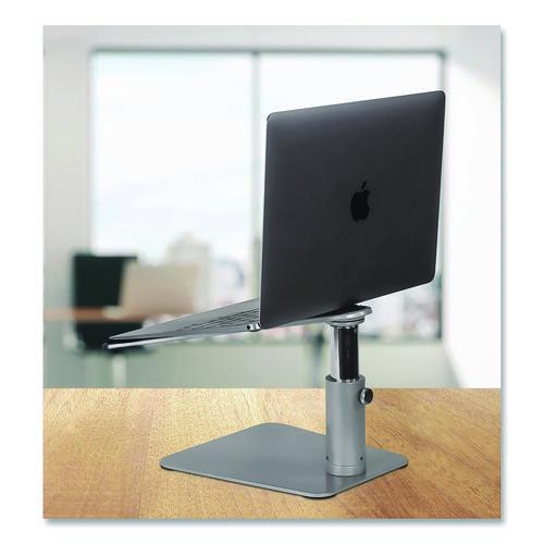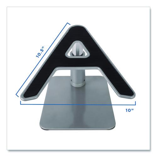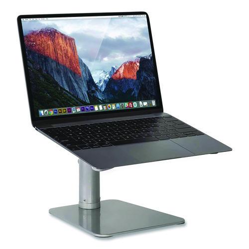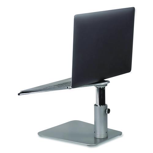 A modern stylish height adjustable laptop stand designed to improve the airflow and efficiency for MacBook laptops and other devices. Raise up your laptop, MacBook, Chromebook, Surface Book to a more comfortable height or align it with an external display. The top of the A-shaped platform is covered with an anti-slip silicone to firmly hold your laptop in place during use and padded feet under the base for stand stability. The adjustable height laptop stand lifts between 4.7 inches to 6.7 inches to work more ergonomically and help reduce neck and back pain. An angled tray reduces glare and eye strain making it easier to read the screen. Ergonomic laptop stands improve your ability to work for longer periods of time becoming more efficient in your work flow. Raising the laptop not only increases productivity and ergonomics, but it also increases air flow around the laptop and improves cooling and performance. All necessary instructions and hardware included.