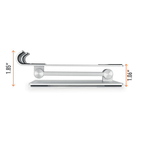 Upgrade your work-from-home or remote office setup with the Adjustable Tablet Stand Riser. Allows you to achieve a healthy working posture by providing flexible height and tilt angle adjustability. Say goodbye to neck and back pains caused by slouching over your tablet for extended periods. More than just a simple laptop holder desk. It also converts your laptop into a desktop monitor, enabling you to connect an external keyboard and mouse for added comfort and productivity. Sturdy and stable, this laptop stand riser has non-slip rubber surfaces that prevent your device from scratches and slipping. It is also portable, foldable and compatible with most tablets and smartphones. Whether you're working from home or on the go, you can take this portable laptop riser with you and work comfortably wherever you do. Features air holes and an aluminum plate for improved heat extraction, which keeps your laptop cool even during extended use.