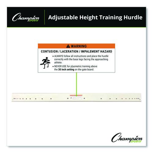 Set up a course and improve timing and speed with the Champion Sports Adjustable Training Hurdle. This lightweight durable hurdle has an adjustable height range of 6" to 42", in 11 increments so it can continue to grow with you as you advance to the next difficulty level. Great for athletes of all ages and abilities, this training hurdle collapses when hit as a safety precaution.Note: This is a non-returnable item.