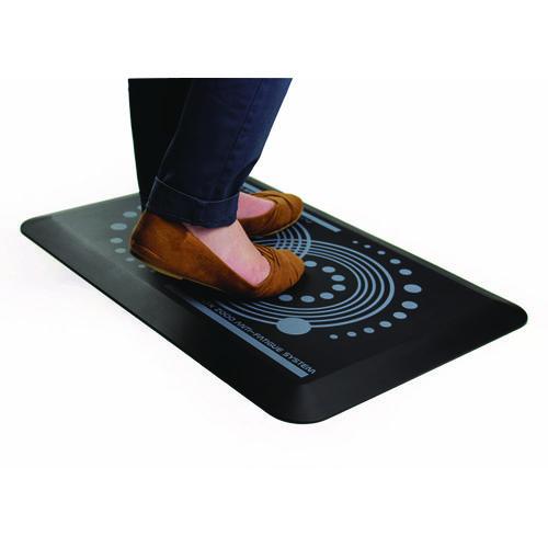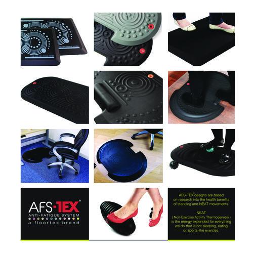 AFS-TEX Active Anti-Fatigue mats are designed to provide the ultimate standing surfaces combining prolonged comfort and effective body support. Reduces the strain on feet, legs, knees and back joints that can be caused through prolonged standing. The AFS-TEX 2000 incorporates a printed design to encourage regular changes in standing position. Regular movement stimulates blood flow, increase the body's metabolism and helps with further fatigue relief. Contains antimicrobial content to protect the mat surface from microbial deterioration. Effective 24/7 for the life of the product. Anti-slip base for stability. Non-toxic and phthalate free. Ideal for office or home use.