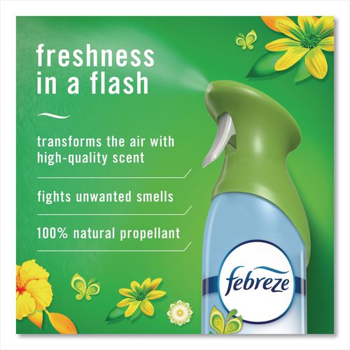 Odors are everywhere-lingering in the air or arising at the most awkward times. Forget masking them with some froo-froo spray; Febreze AIR actually fights air odors. This can of ahhh-some straight up fights stink with a neat little molecule called cyclodextrin (Bonus: It's naturally made from corn). It's a handy air freshener that's easy to use-simply spray in a sweeping motion and fight those bad smells anywhere-the bathroom, the kitchen, that cabin you rented for the weekend, the shoe closet, your kid's room or anytime you want an instant burst of fresh. Because Febreze AIR uses 100% natural propellants, you can confidently freshen your home every day.