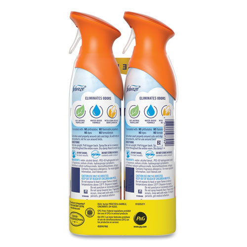 Odors are everywhere-lingering in the air or arising at the most awkward times. Forget masking them with some froo-froo spray; Febreze AIR actually fights air odors. This can of ahhh-some straight up fights stink with a neat little molecule called cyclodextrin (Bonus: It's naturally made from corn). It's a handy air freshener that's easy to use-simply spray in a sweeping motion and fight those bad smells anywhere-the bathroom, the kitchen, that cabin you rented for the weekend, the shoe closet, your kid's room or anytime you want an instant burst of fresh. Because Febreze AIR uses 100% natural propellants, you can confidently freshen your home every day.