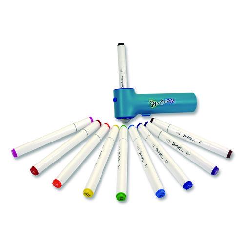 Unleash your creativity with the AirColor™ Airbrush Marker Kit, the ultimate tool for young artists ages 6 to 14. This easy-to-use, washable airbrush kit allows you to create stunning, vibrant airbrush effects without any mess. This kit includes an array of dual-tip markers, each one with a chisel tip on one end, and a bullet tip on the other. The bullet tip effortlessly slides into the AirColor™ Air Brush. The possibilities for artistic expression are endless! Whether you're designing with stencils or free-handing your masterpieces, the AirColor™ kit makes airbrushing a breeze.Package Includes: (10) Markers; (2) Stencils; (1) Airbrush; (1) Charging CableNote: This is a non-returnable item.