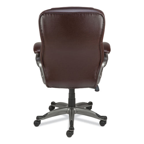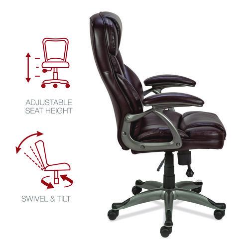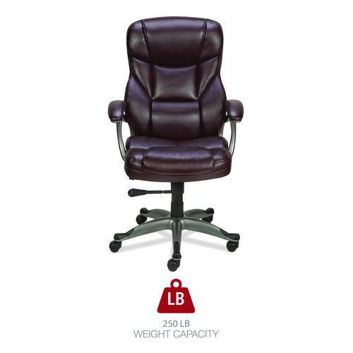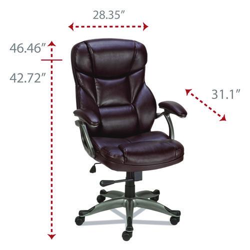Enhance your workspace and add much needed comfort with a leather-bonded, high-back chair. Constructed with plush padding, integrated lumbar support, and padded armrests to deliver optimal support for your neck, back, and shoulders. The pneumatic height adjustment lets you customize the position to fit your body and workspace. Use the adjustable tilt to find and lock the chair at the perfect angle. Includes durable, rolling casters and a five-star base to easily maneuver over tile or carpeted floors. Some assembly required.