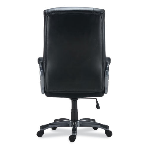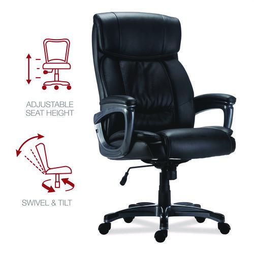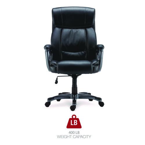 Stay comfortable through extended workdays with this bonded leather, highback chair. Designed for the big and tall occupant, it provides luxurious comfort and maximum head, neck, back, and shoulder support. Customize your working position with adjustable seat height and tilt tension. Swivel and tilt to reach items stored in drawers or stashed under your desk. Mobile design features a stable, five-star base with rolling casters which are compatible with carpet or tile floors. Supports up to 400 lbs. Assembly required.