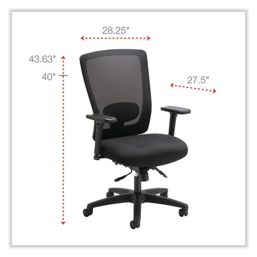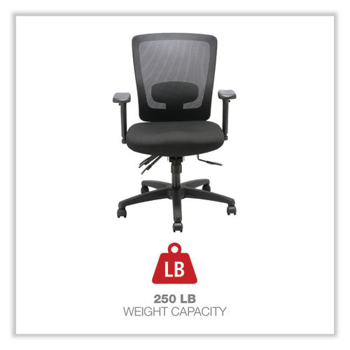 This mid-back chair features a crisp visual design and a variety of ergonomic adjustments at an irresistible price. Mesh back offers breathable support and conforms to the natural curvature of the spine. Lumbar adjustment adapts to support the lower back and can be adjusted to satisfy a variety of different users. Adjustable-height and width arms move up and down, as well as, toward and away from the body to adapt to various body sizes. Asynchronous control offers a wide range of movement, assists in spinal alignment and distributes users weight evenly. 360-degree swivel provides easy of movement in any direction. Supports up to 250 lbs.