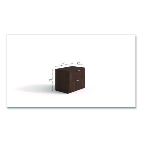 Designed to provide both style and functionality for your office or home workspace. This sturdy file cabinet, crafted from high-quality laminate with a rich finish, enhances the overall aesthetic while offering durable, long-term performance. The cabinet's sleek, banded edges not only add to its refined appearance but also provide added protection against wear and tear. With two spacious file drawers, this unit offers versatile storage for both letter-size and legal-size files, ensuring that all your important documents are organized and easily accessible. The full-extension drawers glide smoothly on ball-bearing slides, allowing you to retrieve files without hassle and maximize your storage capacity. Its combination of sleek design, practical feature and reliable construction makes it an essential addition to any professional office.
