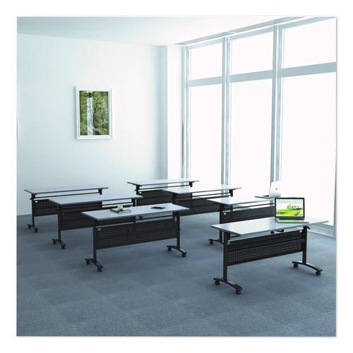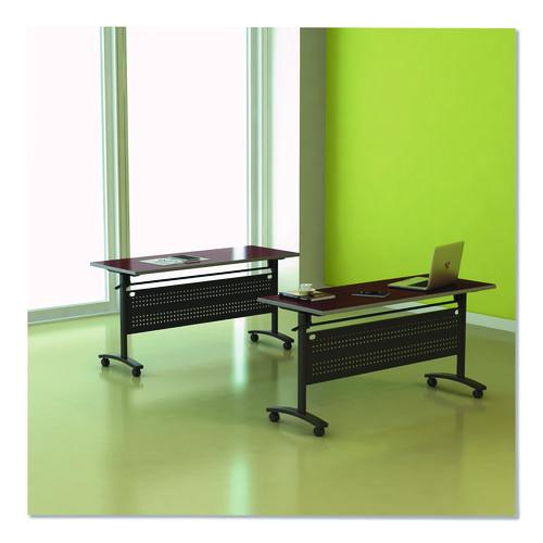 For Valencia Series table tops. Durable, powder-coated steel resists chipping and scratching, includes detachable modesty panel. Flip-down mechanism to fold and nest tables. Four locking casters for mobility or four glides for fixed usage. Top and Base sold and shipped separately—ORDER BOTH.Package Includes: (4) Casters; (4) Glides
