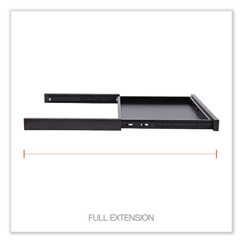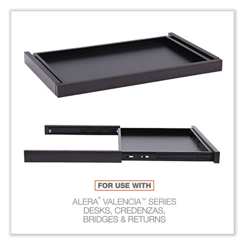 Keep desk supplies organized and in-reach with a Valencia series center drawer that glides in and out. Constructed with durable, thermally fused, woodgrain laminate finish for an elegant look that will withstand the test of time. The coordinated finishes blend in seamlessly to supporting Alera® furniture pieces. Designed for use with any desk, credenza, return, or bridge in the Alera® Valencia Series.Package Includes: Mounting Hardware