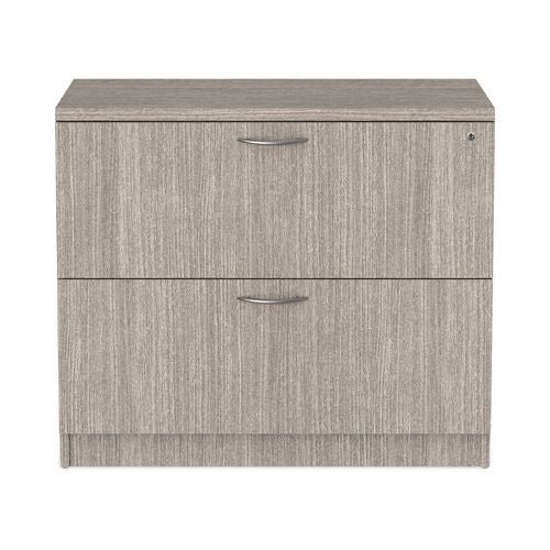 Sturdy, four-sided drawer construction file cabinet with separate front panel. Durable construction that's designed to resist water, scratches, and dents. Finish has a charcoal accent line under worksurface. Can be used as a freestanding file or in combination with credenza shell, which is sold separately. The top removes for installing under worksurface. Two, fold-away safety keys (included) for a slimmer profile.