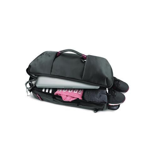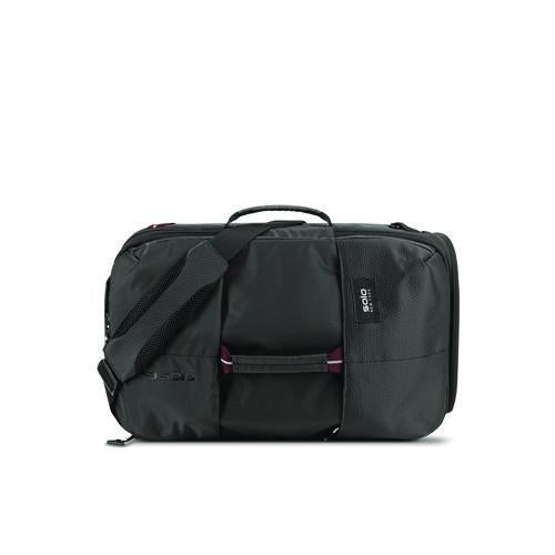 The Solo All-Star Hybrid Backpack Duffel Bag will be the MVP for all your travel needs. Part of the Varsity Collection, this hybrid bag comes with convertible backpack straps which conveniently store away, you can carry this bag on your back or as a duffel. This bag features a large compartment which opens flat. A zipper compartment along the inside cover allows easy storage for a laptop or tablet, and two additional outer zipper pockets allow for essentials to be within easy reach. A separate shoe laundry compartment with exterior zipper runs along one end of the bag, and the other sides all feature convenient carry handles. Each zipper features a sports pull tag and the lightweight nylon construction makes this bag easy to carry. An adjustable padded shoulder strap attaches to D-rings on either end, allowing for various carrying options. Meets standard airline carry-on requirements.