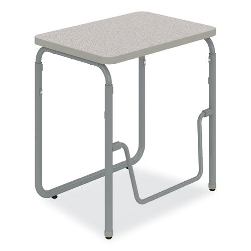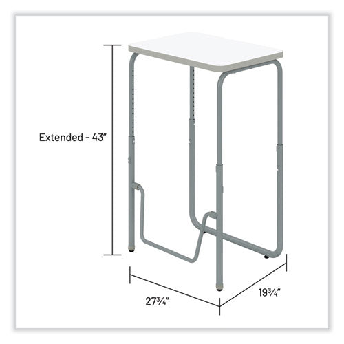 Encourage healthy movement and provide convenient storage with the AlphaBetter 2.0 height-adjustable student desk that features a high-pressure laminate top. This desk comfortably accommodates students of all sizes as they work or sketch ideas. A pendulum footrest allows students to redirect excess energy and continue to move, even as they sit, providing ergonomic support, increasing comfort, and promoting cardiovascular health. Great for boosting productivity and focus, this student desk has the added benefit of optional casters for better mobility throughout the classroom. Height adjusts accommodating students in 5th grade and up as well as adults at seated and standing heights.Note: This is a non-returnable item.