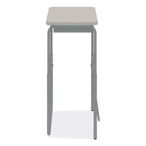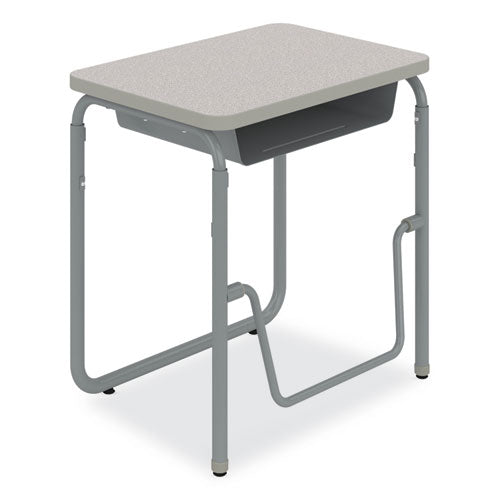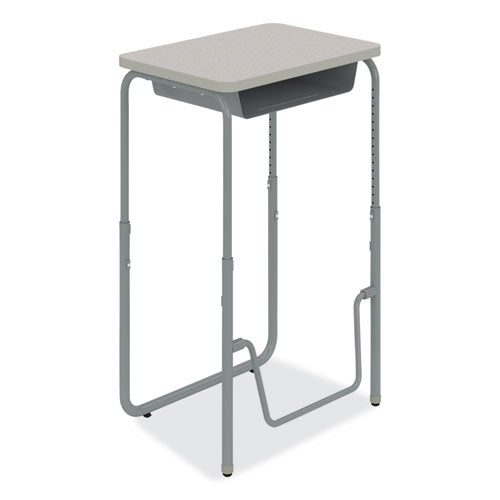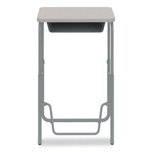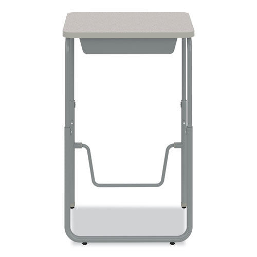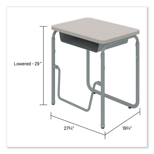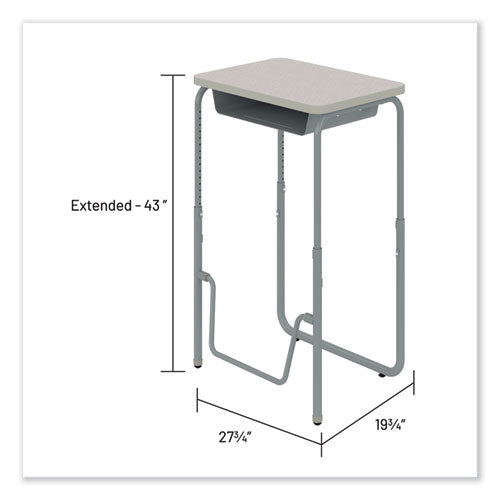 Encourage healthy movement and provide convenient storage with the AlphaBetter 2.0 height-adjustable student desk that features a high-pressure laminate top. This desk comfortably accommodates students of all sizes as they work or sketch ideas. A pendulum footrest allows students to redirect excess energy and continue to move, even as they sit, providing ergonomic support, increasing comfort, and promoting cardiovascular health. Great for boosting productivity and focus, this student desk has the added benefit of optional casters for better mobility throughout the classroom. Height adjusts accommodating students in 5th grade and up as well as adults at seated and standing heights.Note: This is a non-returnable item.
