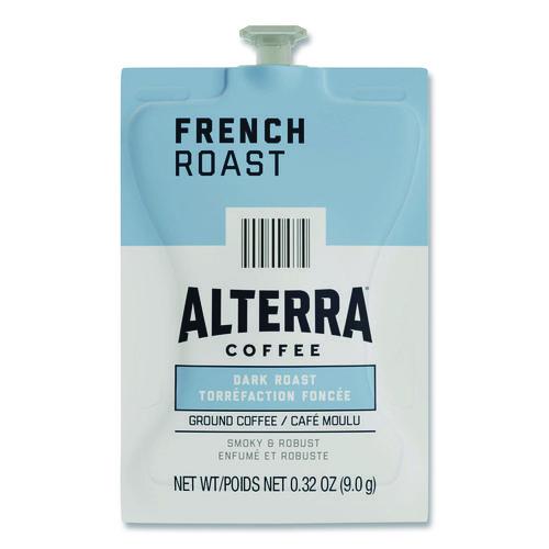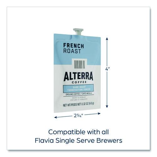 Enjoy Alterra® French Dark Roast Coffee Freshpack, our fresh take on a classic French dark roast. A cup that's heavy bodied, with a robust smoky twist. Our brewing process, where nothing touches the ingredients other than hot water, ensures your drink does not taste like previous brews. Compatible with FLAVIA® single-serve brewers. For single-serve sustainability, innovative pouches are 100 percent recyclable through Terracycle.Note: This is a non-returnable item.