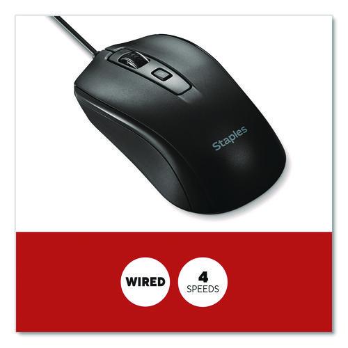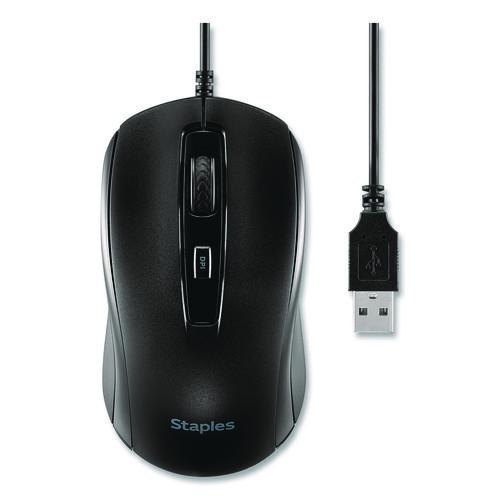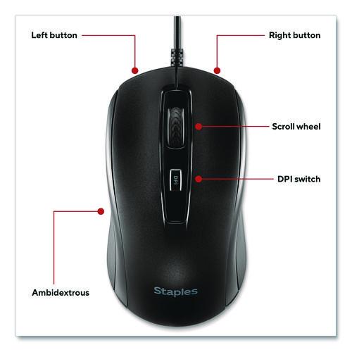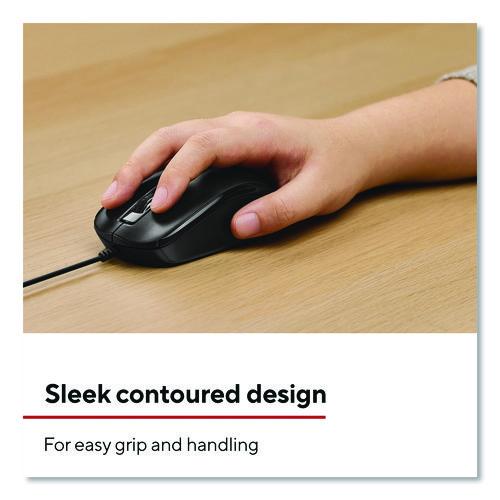 Enjoy comfort and precision with our contoured ambidextrous USB-wired mouse. It has four adjustable DPI settings that will give you smooth and accurate tracking on just about any surface. The mouse features textured side grips for handling and the scroll wheel is perfect for precise line-by-line scrolling. Just plug and play for quick and easy use on all tasks. This mouse works with your setup to enhance your workflow with quiet clicks and smooth scrolling.