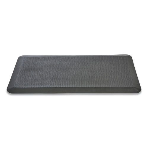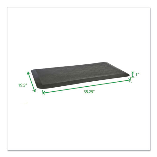 Does standing all day at work make your knees weak and achy? Instead of standing on hard tile or wood, get this floor mat for a cushion between your feet and the floor. Be comfortable with this high-quality floor mat that won't break down over time. Textured surfaced and beveled edges prevent slipping.
