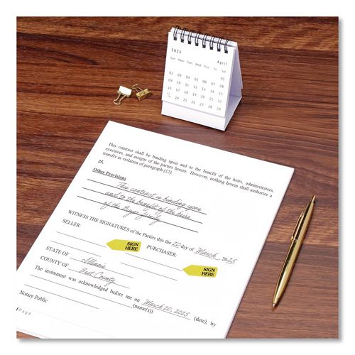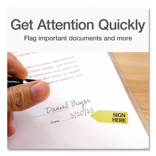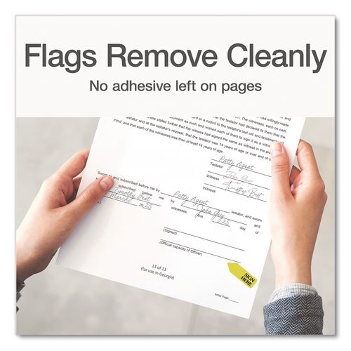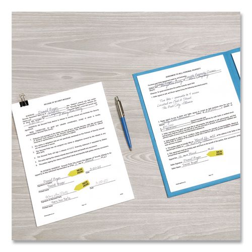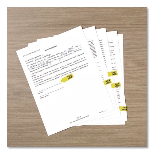 Arrow Message Page Flag Refills, "Sign Here", Yellow, 120 Flags/Roll, 6 Rolls/Box