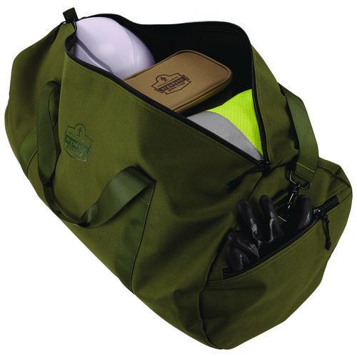 The Arsenal 5020P Standard Gear Duffel Bag is easy to carry and helps organize everything you need for the workday or the weekend. Whether you use it as a way to store your equipment on the job, a hunting bag to trek your gear through the woods, or as a carry-on duffel bag while traveling, you can rely on this utility duffel bag to house and protect your valuables. This lightweight, yet super durable gear bag is made with 600D polyester material to withstand wear and tear for long-lasting performance. Keep your essentials clean and dry with the reinforced water-resistant backing. Heavy-duty ribbed webbing handles and the adjustable padded shoulder straps. A large open main compartment fits all your gear with easy loading and unloading, so nothing is left behind. There are two accessory pockets with zippers on each side to hold smaller items.Note: This is a non-returnable item.
