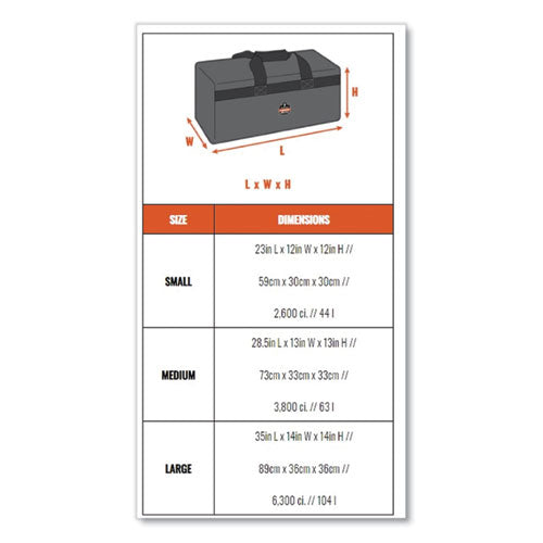 The Arsenal 5020P Standard Gear Duffel Bag is easy to carry and helps organize everything you need for the workday or the weekend. Whether you use it as a way to store your equipment on the job, a hunting bag to trek your gear through the woods, or as a carry-on duffel bag while traveling, you can rely on this utility duffel bag to house and protect your valuables. This lightweight, yet super durable gear bag is made with 600D polyester material to withstand wear and tear for long-lasting performance. Keep your essentials clean and dry with the reinforced water-resistant backing. Heavy-duty ribbed webbing handles and the adjustable padded shoulder straps. A large open main compartment fits all your gear with easy loading and unloading, so nothing is left behind. There are two accessory pockets with zippers on each side to hold smaller items.Note: This is a non-returnable item.