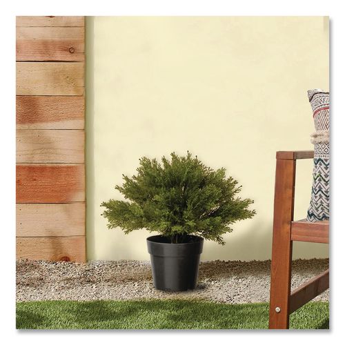 This Globe Juniper in round growers pot will add a touch of greenery to wherever it is displayed. This artificial planting looks incredibly real yet requires none of the maintenance of a living shrub. Perfect for porch, patio or poolside.Note: This is a non-returnable item.