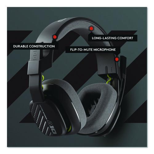 Enhance your everyday gaming setup with the ASTRO A10 gaming headset. Experience explosive audio thanks to 3 2mm dynamic drivers, flip-to-mute boom mic, and durable construction with replaceable ear cushions and headband pad that combine for an unforgettable audio experience. Buckle down for all-night gaming sessions thanks to its ergonomic construction with closed-back design, supported with sturdy construction, and an ultra-durable headband that may just outlast your old favorite headset. Adjust your audio without leaving your seat with an inline volume control. Integrated boom microphone that can be flipped up to mute for privacy and down for crystal-clear comms via a 6.0 mm unidirectional mic. This headset features a removable headphone cable with in-line volume control, letting you adjust audio without pausing the game. An ultra durable headband and sturdy construction offers reliable performance that transcends the standard gaming headset. Ergonomical and robust circumaural construction with a closed back design; optimal for long sessions. Replaceable ear cushions and headband pad removes the need to purchase a new headset, simply replace worn cushions and pads as needed.Package Includes: Volume Cable; Splitter Cable