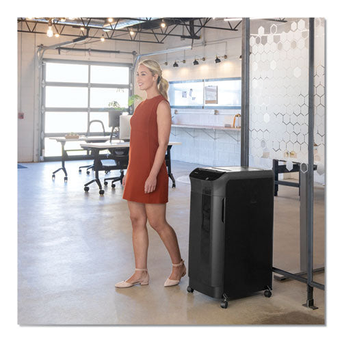 This shredder can automatically shred up to 550 sheets of paper with the touch of a button or manually shred up to 14 sheets into 397 (5/32" x 1 1/2"; Security Level P-4) cross-cut particles. This machine also safely shreds CDs/DVDs, credit cards, staples, paper clips and junk mail. It is equipped with AccuFeed™ Technology providing fast automatic shredding for increased productivity. Simply load the drawer, push the button and walk away. For jam prevention, this machine uses auto reverse technology which automatically stops and reverses the paper if a jam occurs. Also, the SilentShred™ Technology and energy saving sleep mode system allow this machine to integrate easily to any environment. With the ability to shred continuously, it is ideal for shared use and includes a 22-gallon removable basket.Package Includes: Sample Oil; Shredder Bags; Operating Manual; Waste Bin