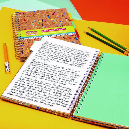 The brand new Pukka Planet range brings you a variety of bold and brilliant designs. Premium quality, bright, 80 gsm paper allows you to use a variety of pens without bleeding or leaking through to the other side. The wirebound spine makes it easy to hold in one hand, making it great for keeping a log or taking notes. Users find this 4-subject Project Book notebook, with its double ring binding, repositionable dividers, and sturdy interior pockets, a convenient and comprehensive multi-course solution. The smaller B5 size fits conveniently in a briefcase or backpack. People expect more from Pukka Pad products and that's what they get.Note: This is a non-returnable item.