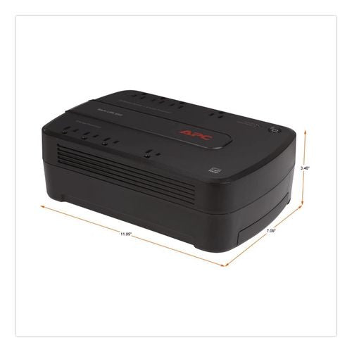 Protect your home and office electronics against power surges and keep them running in the event of an outage with this APC® Back-UPS power-saving UPS. Four of its eight outlets provide battery backup during outages to prevent data loss. When connected to a computer via USB cable, its intuitive PowerChute software automatically saves files and safely shuts down your system when the battery runs critically low to prevent data corruption. All the outlets are surge-protected to ensure the sensitive parts of connected computers, networking devices or gaming systems don't get damaged by sudden voltage spikes.