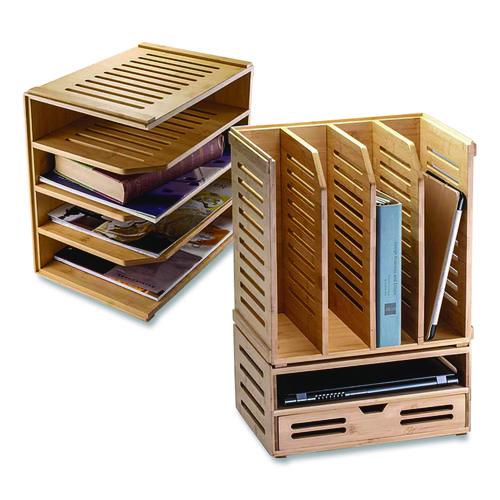 For a workspace organization solution that is stylish, look no further than Officemate's Bamboo products. Bamboo Magazine File is a storage solution for keeping magazines, files, documents, and other materials organized. It is designed with four separate filing compartments, can be used vertically or horizontally and can stack and combine with other bamboo collection items for customizable organization. Modern, natural looking and functionality make it a great choice for home and office organization.