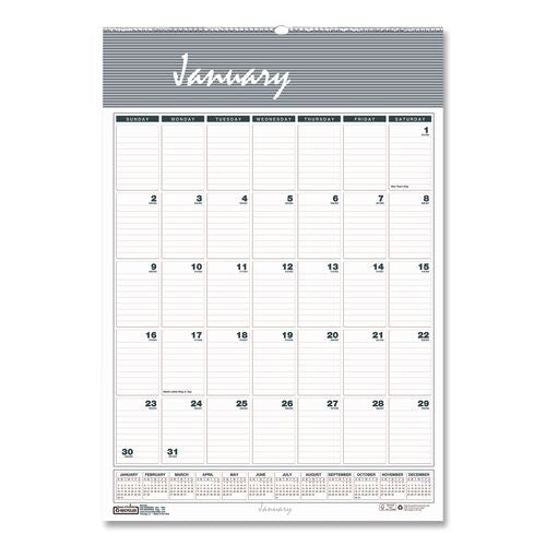 Ruled daily blocks keep notations neat. Full-year reference calendar aids in planning throughout the year. Neutral graphics match any décor. Wirebound with a full chipboard backer and a sturdy wire hanger. Made entirely of recycled materials.Note: This is a non-returnable item.