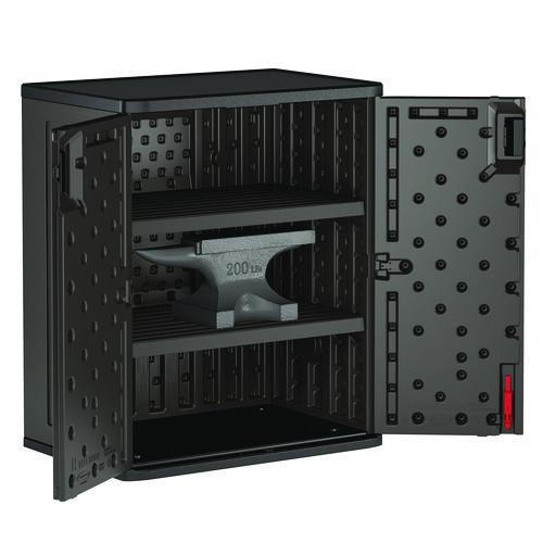 The Suncast Commercial® base storage cabinet is made using state of the art blow molding technology that produces greater strength and durability. The cabinet's heavy duty construction resists scratches, dents and rust. Each shelf can hold up to 200 lbs. and they will resist bending under the weight. They are quick and easy to assemble and require minimal tools. This cabinet is the perfect storage solution for any situation.