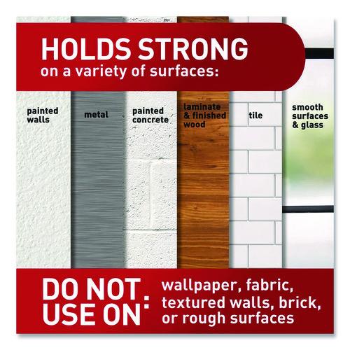 Damage-free hanging — Holds strongly, removes cleanly. Water-resistant adhesive sticks to a wide variety of surfaces: glass, metal, ceramics, fiberglass, wood, vinyl, etc. and is designed specifically for hot, wet, humid environments. Easily move and rehang framed pictures and posters when cleaning, redecorating or simply reorganizing without leaving holes, marks, sticky residue or stains.