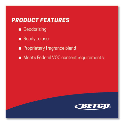 Enjoy our proprietary blend of fragrance oils and malodor counteractants. Effectively bonds to malodors to neutralize them. To freshen and eliminate odors in the air, mist directly in the air. To eliminate odors on fabric or hard surfaces, spray directly on surface using trigger sprayer. Meets all Federal VOC content requirements.