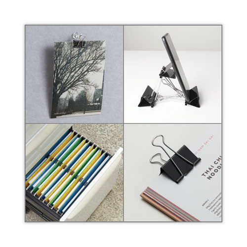 Ultra-efficient binder clips feature handles that can be hung, folded flat against clipped material, or removed for permanent binding. Efficient triangular design provides optimum strength and compression.