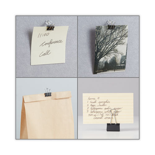 Ultra-efficient binder clips feature handles that can be hung, folded flat against clipped material, or removed for permanent binding. Efficient triangular design provides optimum strength and compression.Package Includes: (1) Clear Plastic Zip-Seal Bag