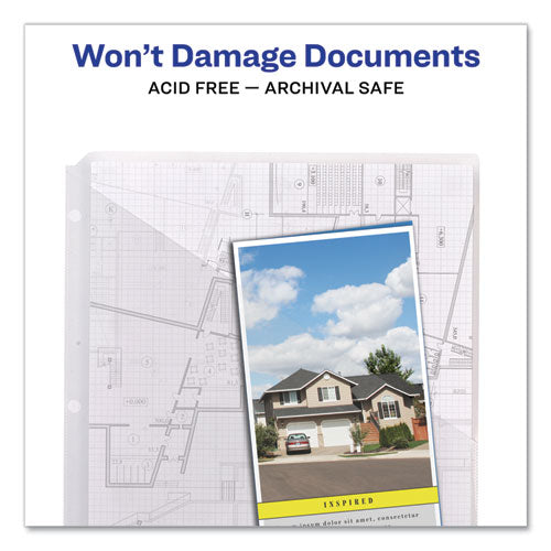 Durable, see-through pockets keep binders neatly organized. Ideal for long-term storage, non-stick polypropylene material is acid free and won't lift print. Each pocket holds up to 20 insert sheets and fits in standard three-ring binders.