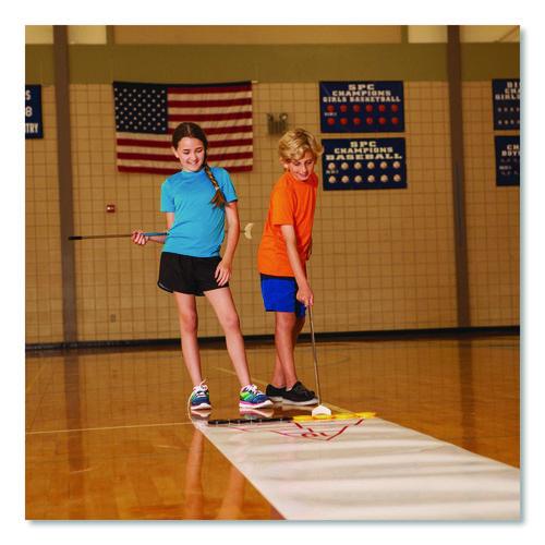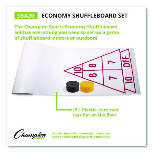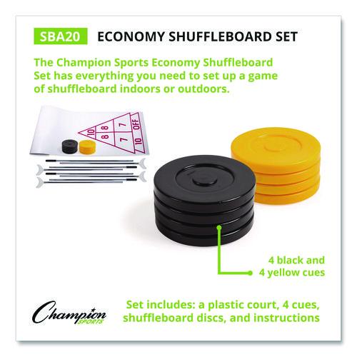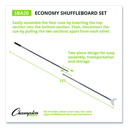 The Champion Sports Blacktop Shuffleboard Set has everything you need to set up a game of shuffleboard outdoors. The set includes two cues, along with shuffleboard discs and sidewalk chalk.Package Includes: (2) Two-Piece 51" Cues; (4) Red Discs; (4) Yellow Discs; Sidewalk ChalkNote: This is a non-returnable item.