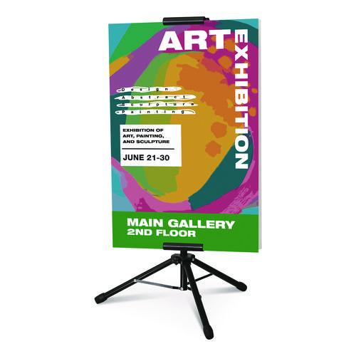 Display retail promotions, event details, exhibit information, restaurant menus and more with this floor sign stand. The heavy-duty floor pedestal weighs over 5 lbs for stability and durability. Double-sided with a black finish, ideal for displaying posters.Package Includes: Carrying Bag